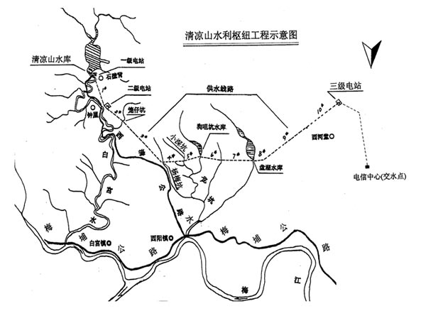 清凉山水库集雨面积94.1km2,正常库容3370万m3,总库容3681万m3,是以供水、防洪为主,结合灌溉、发电的多年调节中型水库。