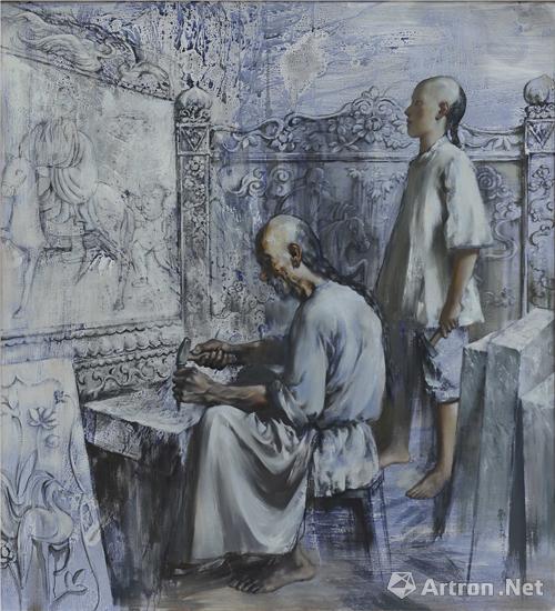 曹立伟 《林风眠跟祖父打石碑》 200×180cm